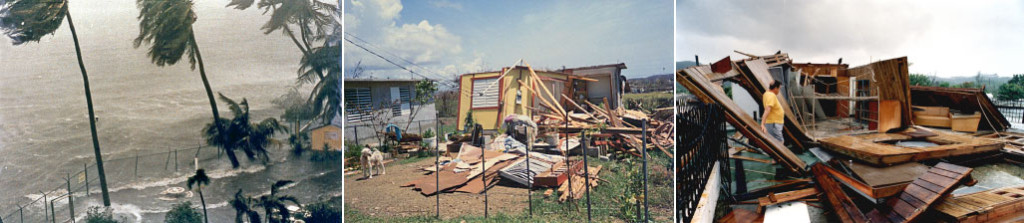 La locura que es, a veces, ser boricua, es desear desde lo más profundo de nuestro ser, que nos azote una tormenta o un huracán para resolver nuestra sequía y acabar con el racionamiento. ¡Dime si no hay que estar loco para eso! Cuando anuncian lluvia, nos llamamos para hacer corillos y pasar juntos la tormenta en una casa. “Fulano ¿dónde vas a pasar la tormenta? Vente pa’ acá que yo vivo en un piso 12 y acá se siente más”. Nos apertrechamos con cerveza desafiando la odiada Ley Seca que pone el gobierno porque hay boricuas que se ajuman pa’ pasar el temporal. Esperamos la conferencia del Gobernador con una sola esperanza: que suspendan las clases y el trabajo para tener un día libre. Vaciamos los supermercados y las gasolineras como si fuera el fin del mundo. Hugo y George son dos ejemplos de cómo queda Borikén después de un fenómeno como estos.